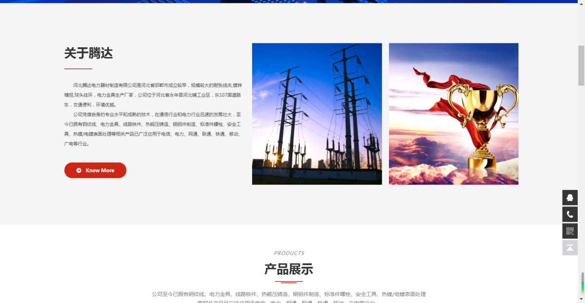 河北騰達電力器材制造有限公司是河北省邯鄲市成立較早,規(guī)模較大的通信器材、電力金具***性制造企業(yè),公司位于河北省永年縣河北鋪工業(yè)區(qū),東107國道路東,交通便利,環(huán)境優(yōu)越...